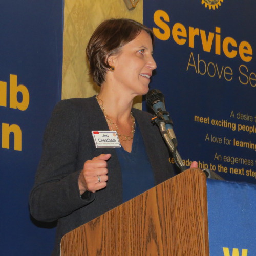 Dr. Jennifer Cheatham provided an “annual report” in her third Rotary presentation since becoming superintendent of the Madison Metropolitan School District in April 2013. Her 2015 appearance was special in that it was her first since becoming a member of the Rotary Club of Madison, she announced to generous applause. The Strategic Framework developed by the Madison Board of Education and staff, focuses on systemic improvement in our urban school district, the key to which lies in development, instructional alignment and coherence at every level of a school system aimed at achieving breakthrough results in student learning. Goal 1 of the plan includes milestones such as proficiency in reading and mathematics in grade 5. The lyrics, “reading and ‘riting and ‘rithmatic” from the 1907 song “School Days,” proclaimed by songleader Brad Hutter remain relevant today.