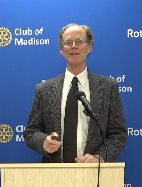 After being glued to our televisions, radios and phones for over twenty-four hours trying to dissect and understand what was happening with the 2020 United States Presidential election, it was a breath of fresh air to welcome Professor David Canon to the Rotary stage to help put things into perspective and answer so many nagging questions that many of us had had on our minds for years – and other questions that had arisen only minutes before the presentation began (Question: Will Wisconsin have a recount? Answer: Perhaps, but an election recount has never shifted a result where the vote margin was over 20,000 votes, which was the case in Wisconsin at the time of the presentation).