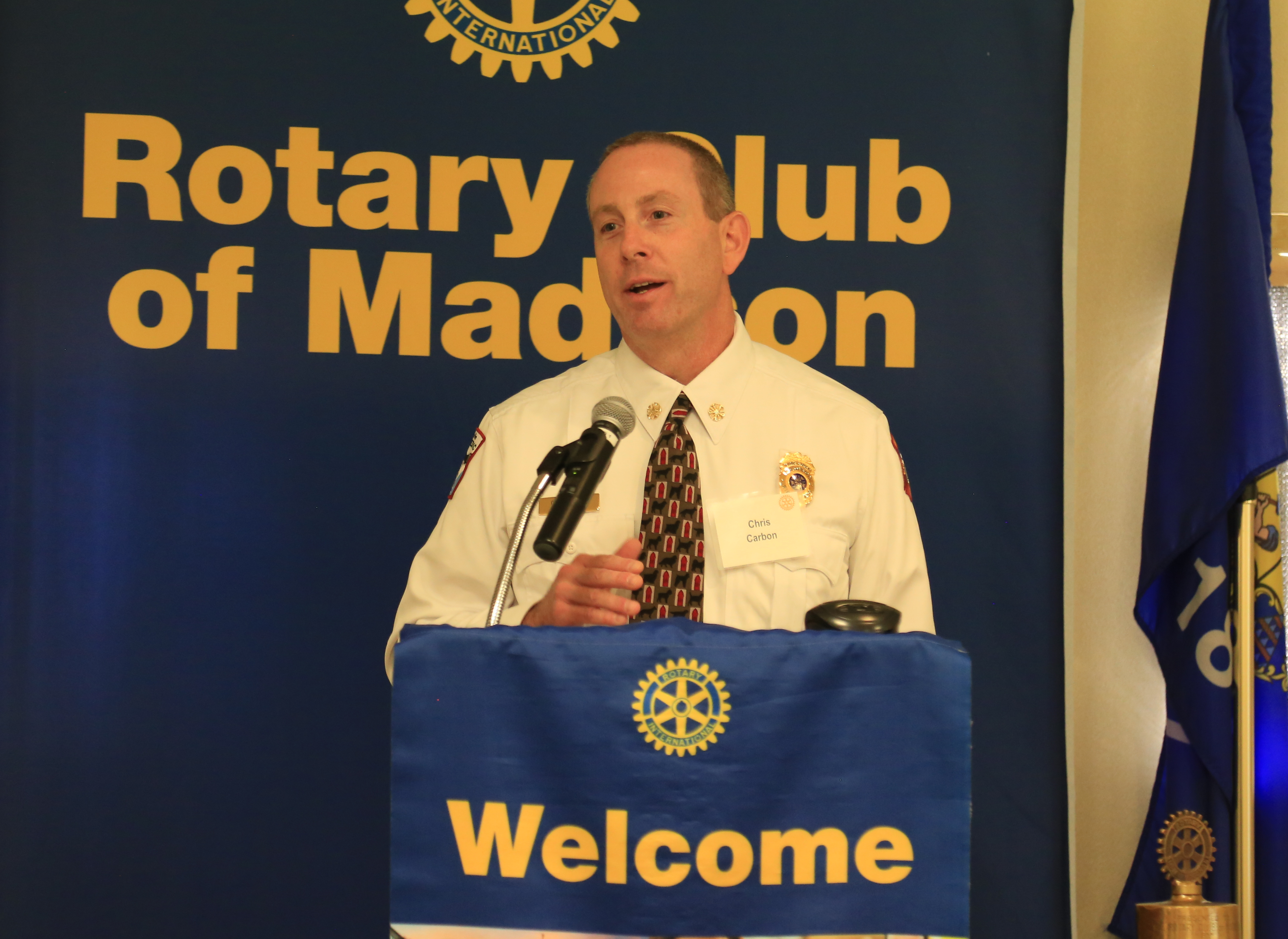 Our speaker on August 31 was Chief of the Madison Fire Department Chris Carbon. (His grandfather, Max Carbon, was, for many years, a member of our club.) He offered a general overview of the Department, noting that there are 35,000 requests for service every year; the vast majority of which are not to put out fires. The department has many special-service teams to handle the different kinds of service people require. He emphasized two. The Community Paramedic Program aims to identify peoples’ needs and to build relationships with the public. There is a partnership with UW Health and Meriter. One of the primary goals is to reduce return visits to the ER and enable greater independence of patients.