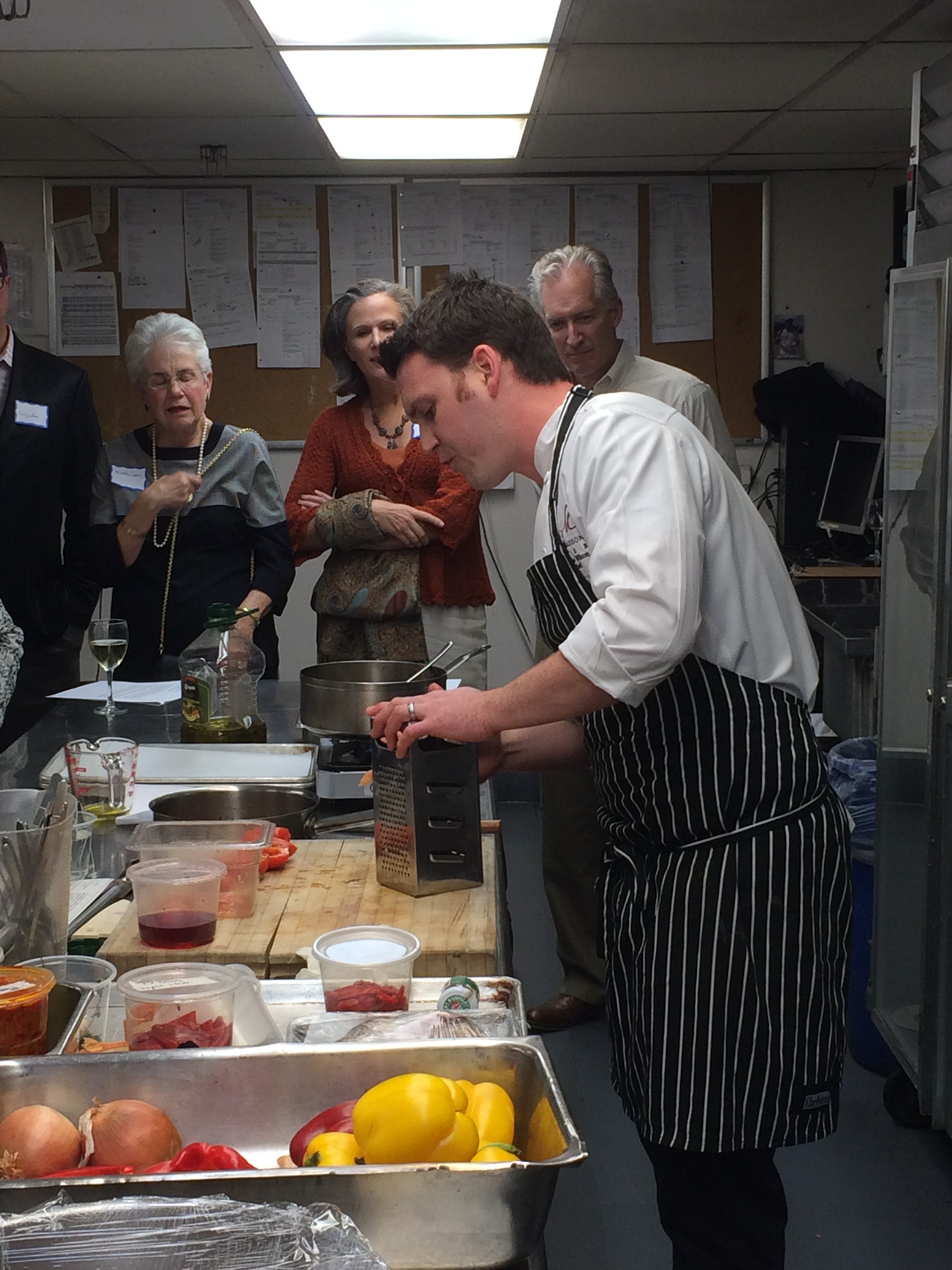 The feast and festivities launched with three songs from Steve O’ Goldberg, the resident Culinartarian troubadour (say that a couple of times over a wine cocktail). So glorious was his voice, no Irish pipe nor drums were needed. Our bard, 20 years a’singin’ in Irish pubs with fellows, O’ Goldberg leapt onto a chair (yes, he did) to regale the Fellowship with the tale of the rationale for Irish tunes – three categories be they: nonsense, drinking, and rebel. We were in for all three! The titles of the songs were never given, but the gist of them was: “Mrs. Murphy’s Chowder”, “Irish Jubilee and Cassidy” (we were delighted we were in for less than the full 25 verses), and “Johnson’s Motor Car”. More later.