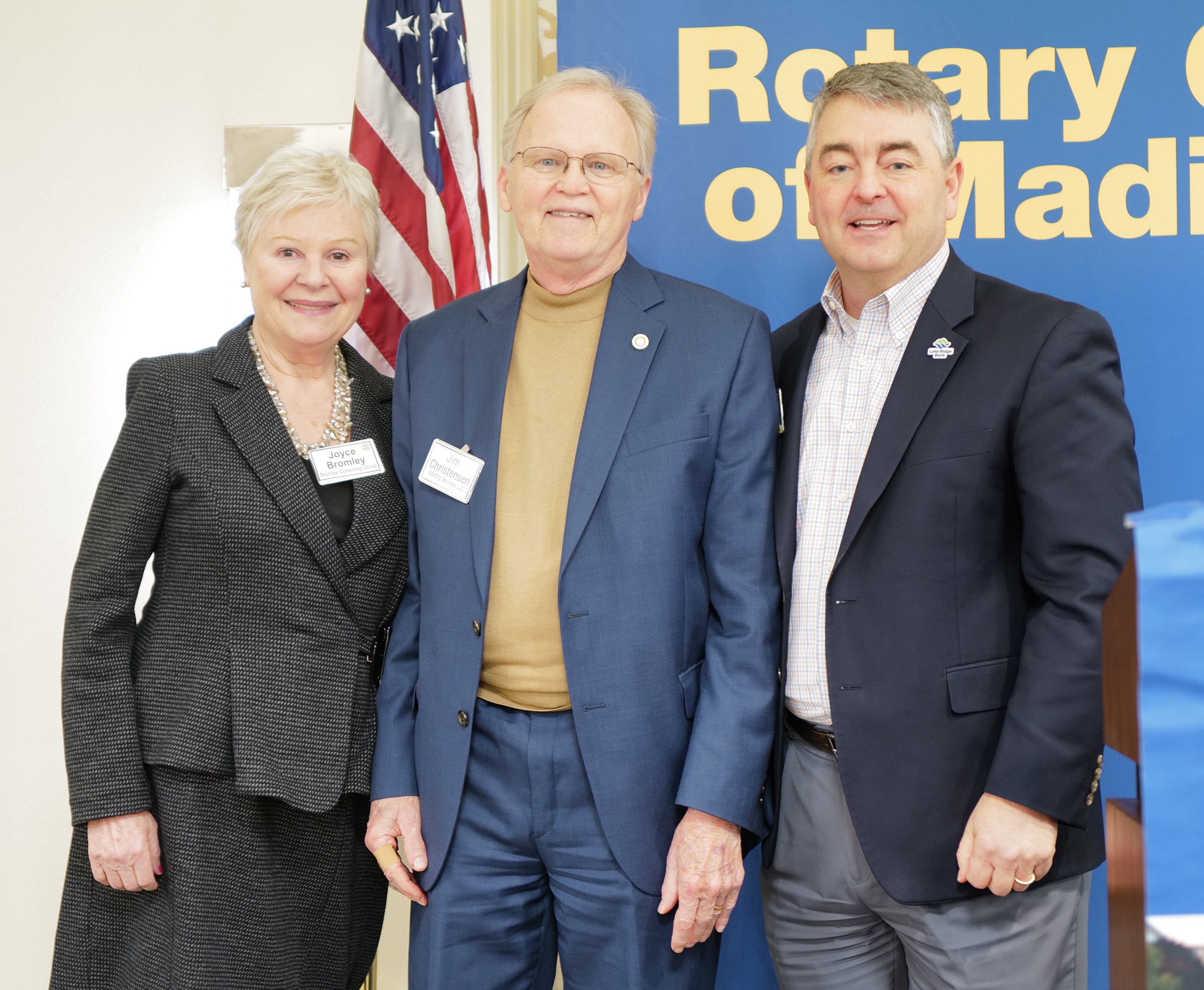 From left: Joyce Bromley, Jim Christensen and Club President Paul Hoffmann