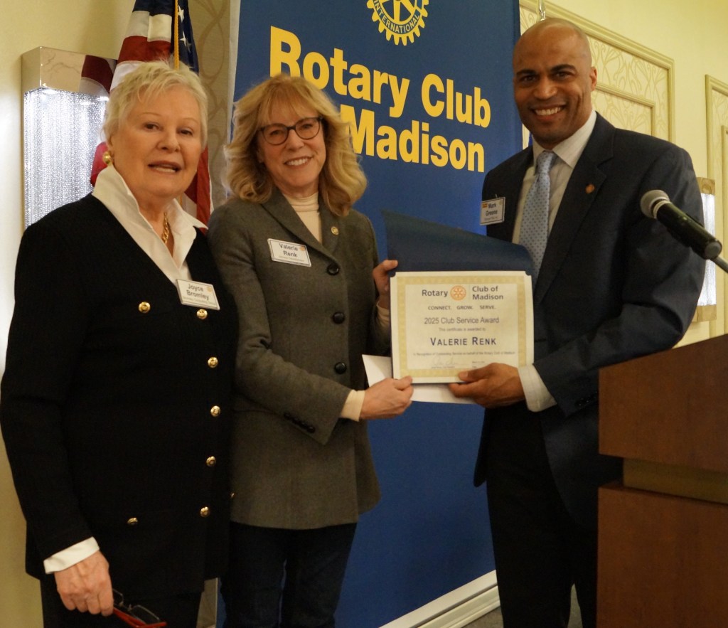 It is an honor on behalf of our club, to thank Valerie for her extensive contributions with the 2025 Rotary Club of Madison Club Service Award!