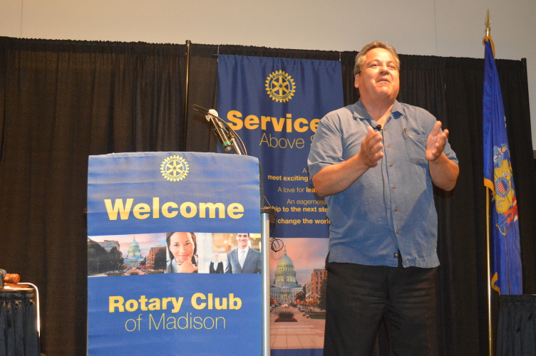 President Ellsworth Brown began the program thanking the Rotary Office staff and those who supported him during the past year: his wife Dorothy, Assistant Julie Schultz and members of the club. He thanked the Club for it’s commitment, action, willingness to say “yes” and volunteerism, ending with a quote from Yogi Berra, “It isn’t the heat that gets you, it’s the humility.”
