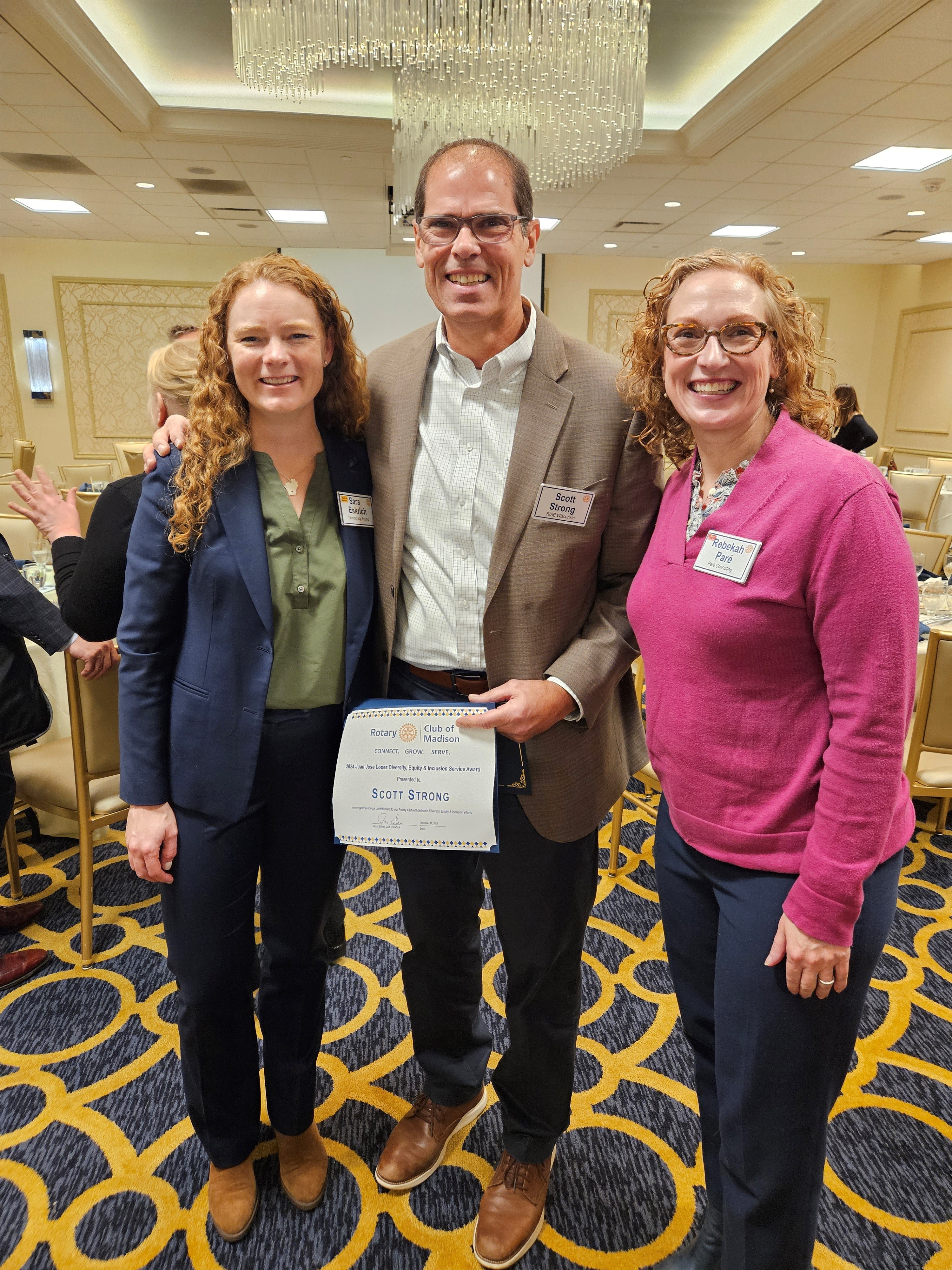 For Scott’s leadership efforts in advancing the principles of our club’s commitment to our DEI goals, we are presenting him with our 2024 Rotary Club of Madison Juan Jose Lopez Diversity, Equity and Inclusion Award. Thank you, Scott, for continuing to help us advance the successes of our committee’s work.