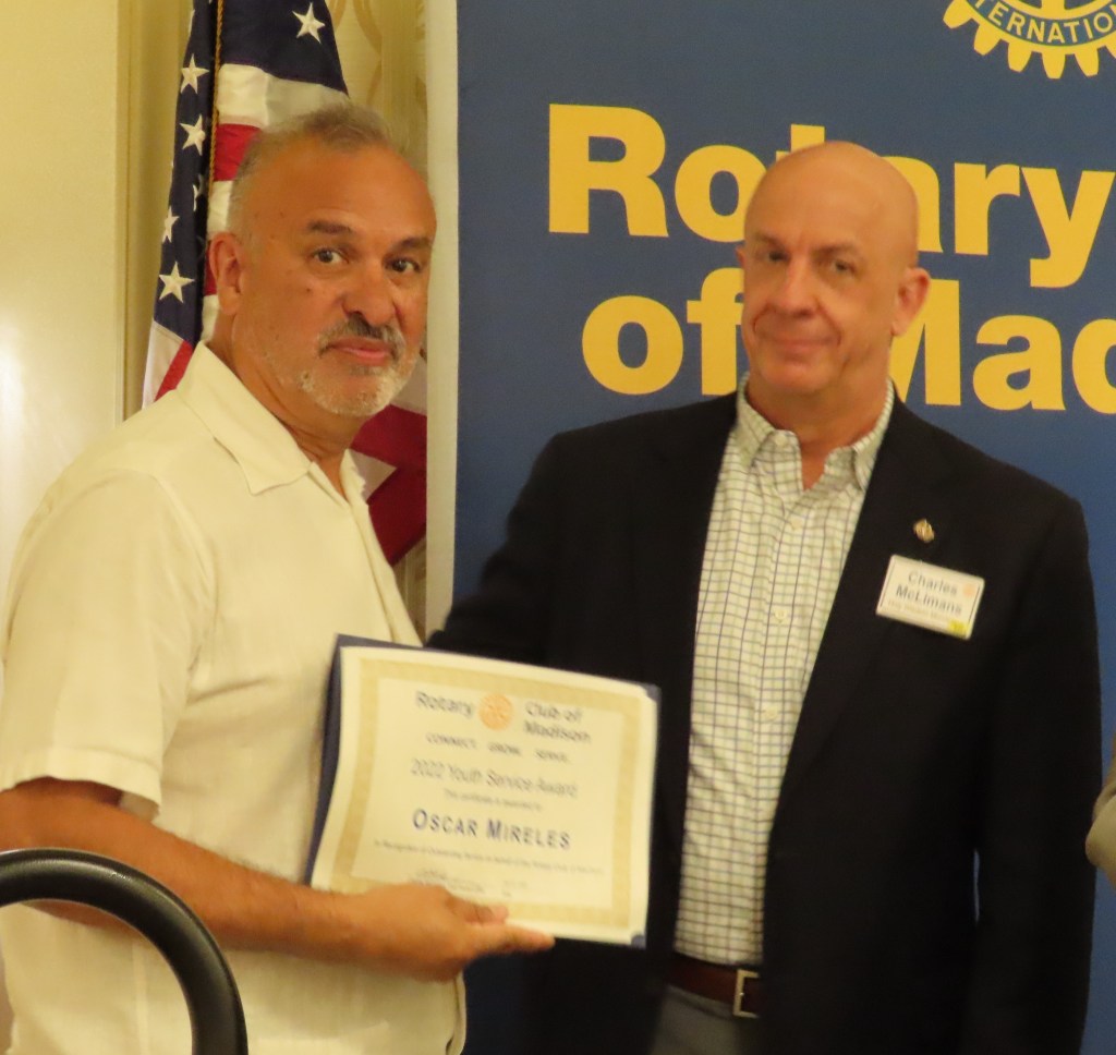 Oscar Mireles Receives 2022 Rotary Club of Madison Youth Service Award