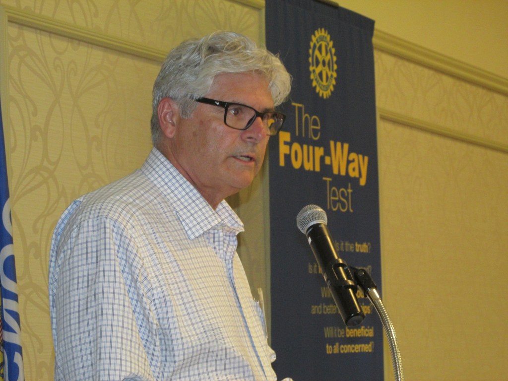 James Skibo, PhD. Wisconsin State Archaeologist at the Wisconsin Historical Society, easily mesmerized Rotarians at the August 3 meeting. He described the amazing find in Madison’s Lake Mendota waters, the now world-famous “Mendota Dugout Canoe” discovered underwater last year.